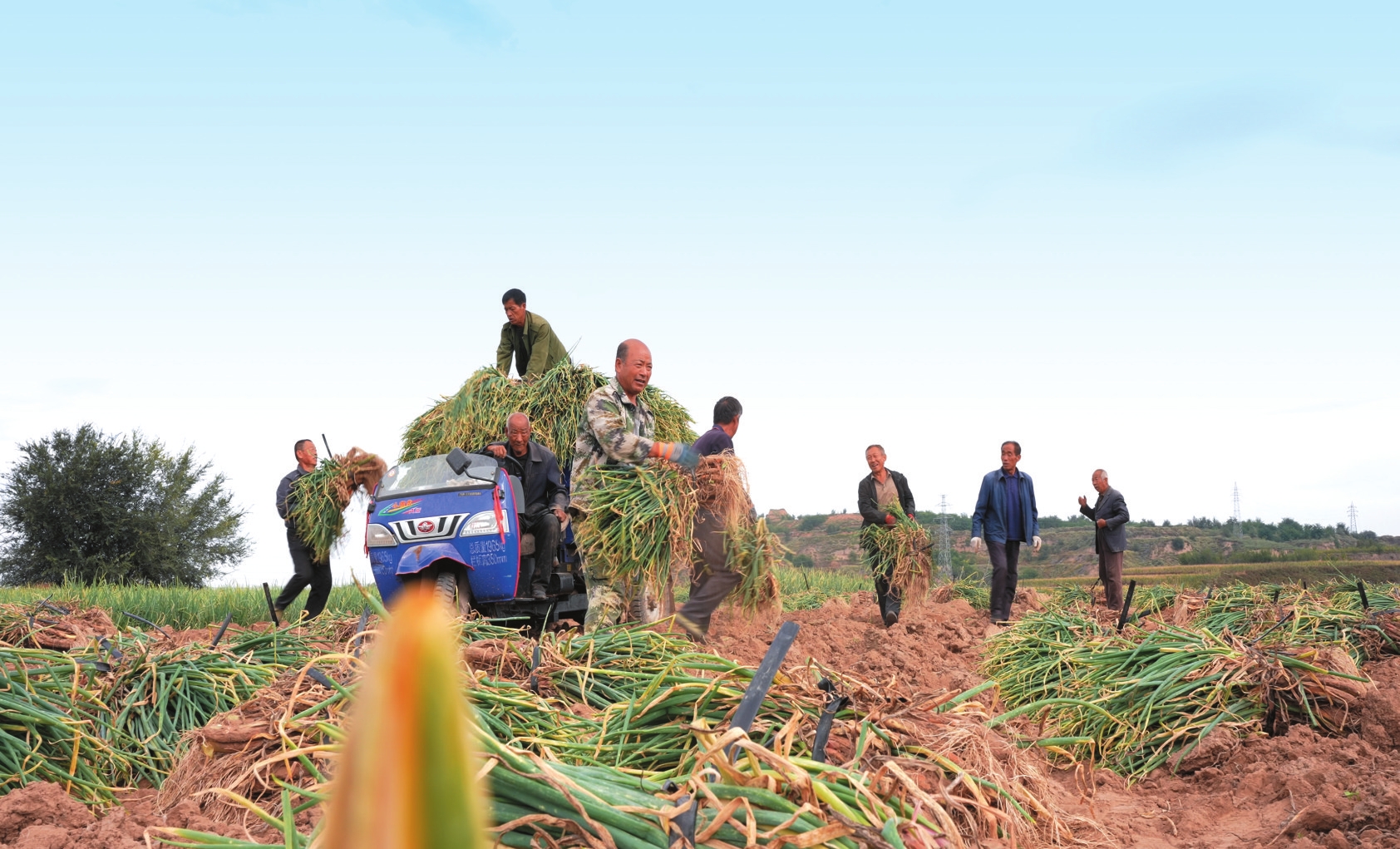 河曲縣巡鎮(zhèn)鎮(zhèn)赤泥也村紅蔥喜獲豐收,萬斤訂單裝車出貨。何 帥攝