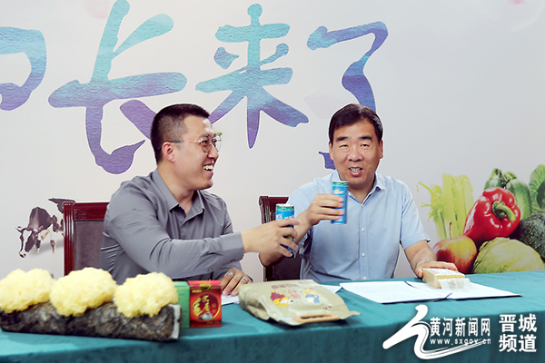 圖為晉城市市長王震助陣晉城特色農產品直播帶貨節(jié),藥茶是最具人氣的明星產品。