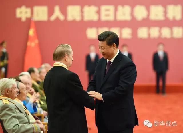 “在14年反抗日本軍國主義侵略特別是8年全面抗戰(zhàn)的艱苦歲月中,全體中華兒女萬眾一心、眾志成城,凝聚起抵御外侮、救亡圖存的共同意志,譜寫了感天動地、氣壯山河的壯麗史詩,涌現出楊靖宇、趙尚志、左權、彭雪楓、佟麟閣、趙登禹、張自忠、戴安瀾等一批抗日英烈和八路軍‘狼牙山五壯士’、新四軍‘劉老莊連’、東北抗聯八位女戰(zhàn)士及國民黨軍‘八百壯士’等眾多英雄群體?!?2015年9月2日,習近平在頒發(fā)“中國人民抗日戰(zhàn)爭勝利70周年”紀念章儀式上親手為抗戰(zhàn)老戰(zhàn)士頒發(fā)紀念章,并對抗戰(zhàn)英雄給予高度贊譽。