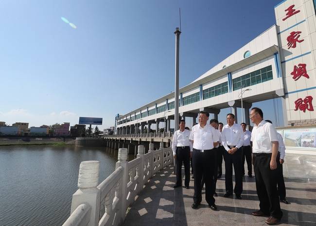 習(xí)近平來到阜陽市阜南縣王家壩閘 攝影:新華社記者鞠鵬 王曄