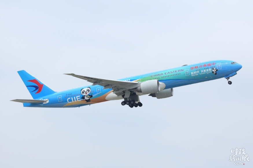 △7月2日,由東航與中國(guó)國(guó)際進(jìn)口博覽局合作推出的全球首架“進(jìn)博號(hào)”主題彩繪飛機(jī)正式亮相,未來將作為進(jìn)博會(huì)的“空中大使”飛向全球。
