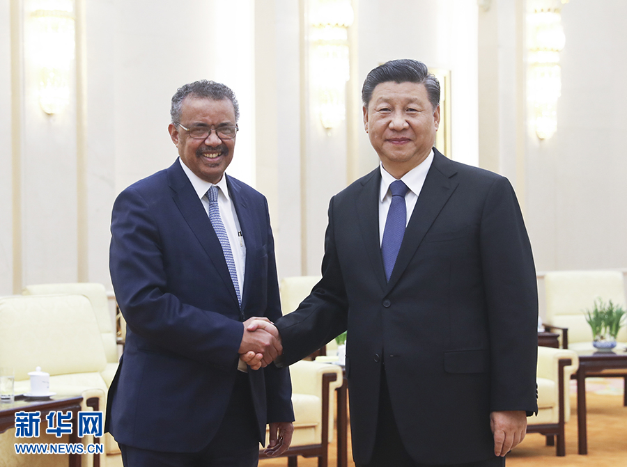 1月28日,習(xí)近平在北京人民大會(huì)堂會(huì)見(jiàn)世界衛(wèi)生組織總干事譚德塞。 新華社記者 鞠鵬 攝