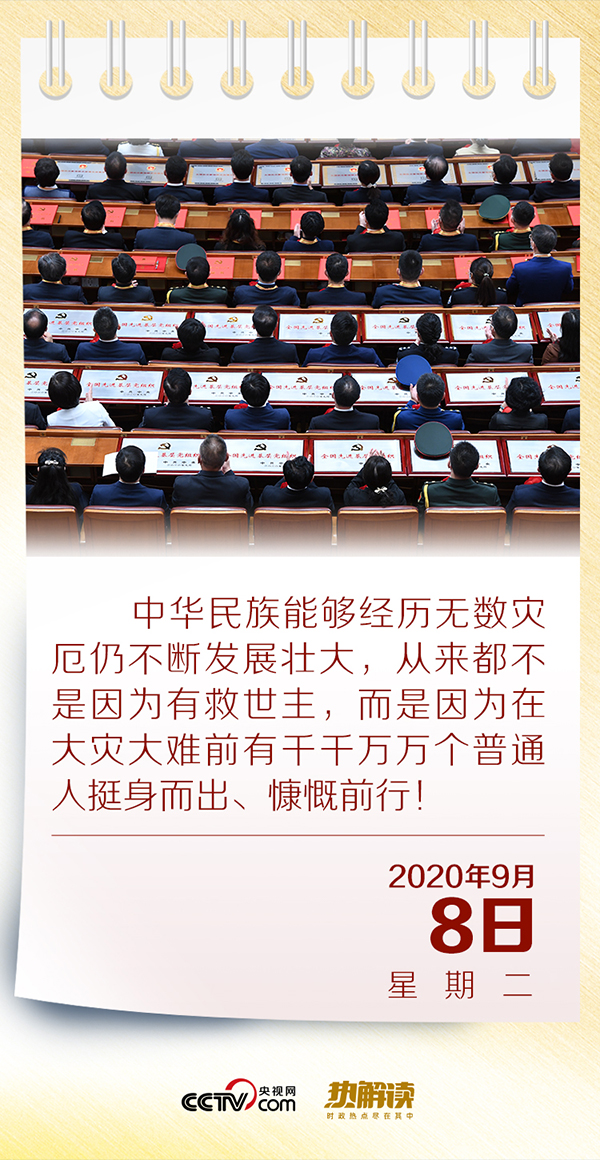 9月神州 機(jī)器轟鳴、書聲瑯瑯 城市車流如織、鄉(xiāng)村谷米滿倉(cāng) 秋日艷陽(yáng)沐英雄 8日上午10時(shí)許 全國(guó)抗擊新冠肺炎疫情表彰大會(huì) 在人民大會(huì)堂隆重舉行 習(xí)近平總書記親自為 鐘南山、張伯禮、張定宇、陳薇 頒授勛章獎(jiǎng)?wù)虏l(fā)表重要講話 回首歲末年初,大疫初降 一場(chǎng)氣壯山河的人民戰(zhàn)爭(zhēng)、總體戰(zhàn)、阻擊戰(zhàn)打響 一方有難、八方支援 白衣為甲、逆行出征 風(fēng)雨同舟、眾志成城 全國(guó)人民都“為熱干面加油” “全中國(guó)等你痊愈,我們相約春天賞櫻花” “武漢必勝、湖北必勝、中國(guó)必勝” 中國(guó)人民用明知山有虎、偏向虎山行的勇氣 書寫下可歌可泣、蕩氣回腸的壯麗篇章