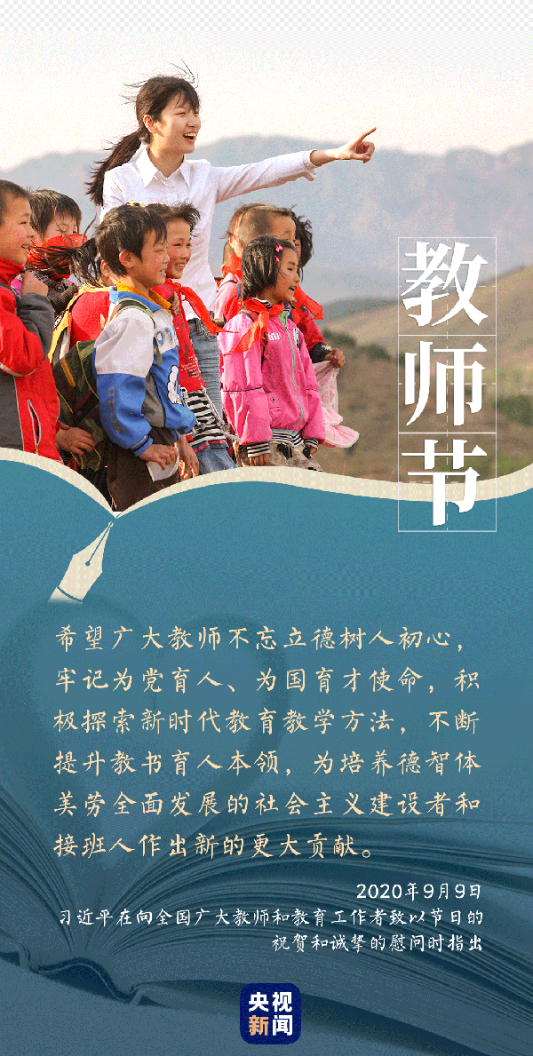 黨和國家事業(yè)發(fā)展需要一支師德高尚、業(yè)務(wù)精湛、結(jié)構(gòu)合理、充滿活力的高素質(zhì)專業(yè)化教師隊伍,需要一大批好老師。第三十六個教師節(jié),讓我們跟總書記一起,向好老師致敬。