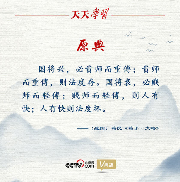 《荀子·大略》更是把教師地位提高到攸關(guān)國家興亡的高度:“國將興,必貴師而重傅;貴師而重傅,則法度存?!币馑际?,國家將要興盛,一定尊敬老師并看重有技能的人;如此,規(guī)矩和制度就能保持并得以推行。反之,國家將要衰微,一定鄙視老師并看輕有技能的人,如此人們就產(chǎn)生放肆之心;人有了放肆之心,規(guī)矩和制度就會被破壞。這一觀點(diǎn)在中國思想史上產(chǎn)生了十分深遠(yuǎn)的影響。