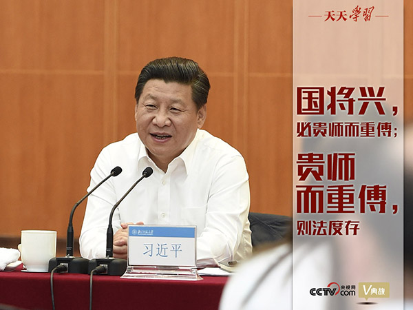 2013年9月9日,正在烏茲別克斯坦進(jìn)行國事訪問的習(xí)近平總書記向全國廣大教師致慰問信,送上節(jié)日祝福,指出全社會要大力弘揚(yáng)尊師重教的良好風(fēng)尚,使教師成為最受社會尊重的職業(yè)。