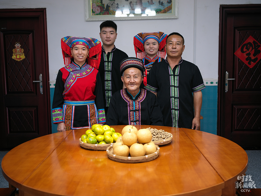 △朱中雄(中)一家當天拍的全家福。(總臺央視記者彭漢明拍攝)