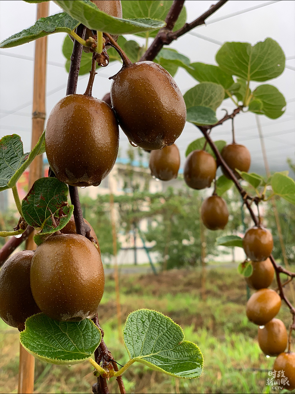 △示范基地種植的獼猴桃有翠香、金紅等品種,共240畝,預計產量達2000斤/畝,產值200余萬元。(總臺央視記者段德文拍攝)
