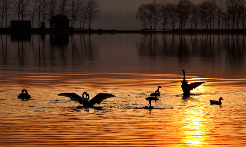 每年的10月下旬,經(jīng)過長途遷飛的天鵝成群結(jié)隊來到圣天湖越冬,數(shù)量最多時達2萬只。資料圖