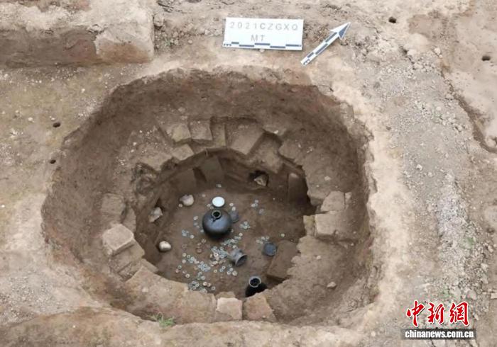 經(jīng)考古發(fā)掘,該墓地出土陶盆、銅錢、瓷碗、陶盤、陶玉壺春瓶等器物,考古人員根據(jù)墓葬形制與出土器物推測3座墓葬為明代早期家族墓葬,明堂位于3座墓葬的南側(cè),應(yīng)為此家族墓地的祭祀明堂。