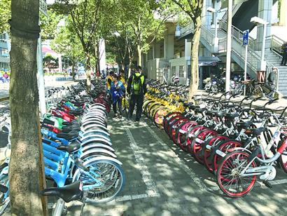 半年前這里不是這樣的?!案骷夜蚕韱诬嚻髽I(yè)過度投放的共享單車,把人行道堵得水泄不通。很多市民用完車就在路邊隨處放,我們只能一輛一輛搬走?!标愔谢貞洠菚r(shí),為了保障正常的交通秩序,交警部門只得增派警力駐守管理。盡管牽扯了民警大量精力,但由于共享單車體量龐大,管理效果并不理想。
