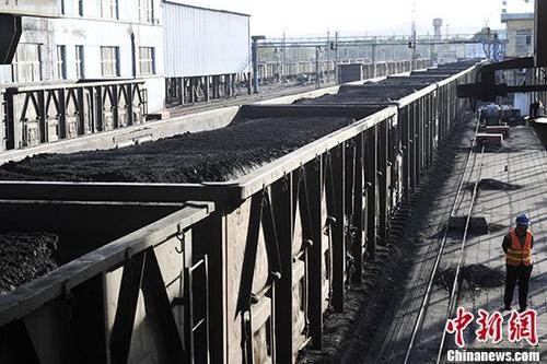 資料圖:煤礦貨運(yùn)站一列滿載即將外銷煤炭的列車。中新社記者 韋亮 攝