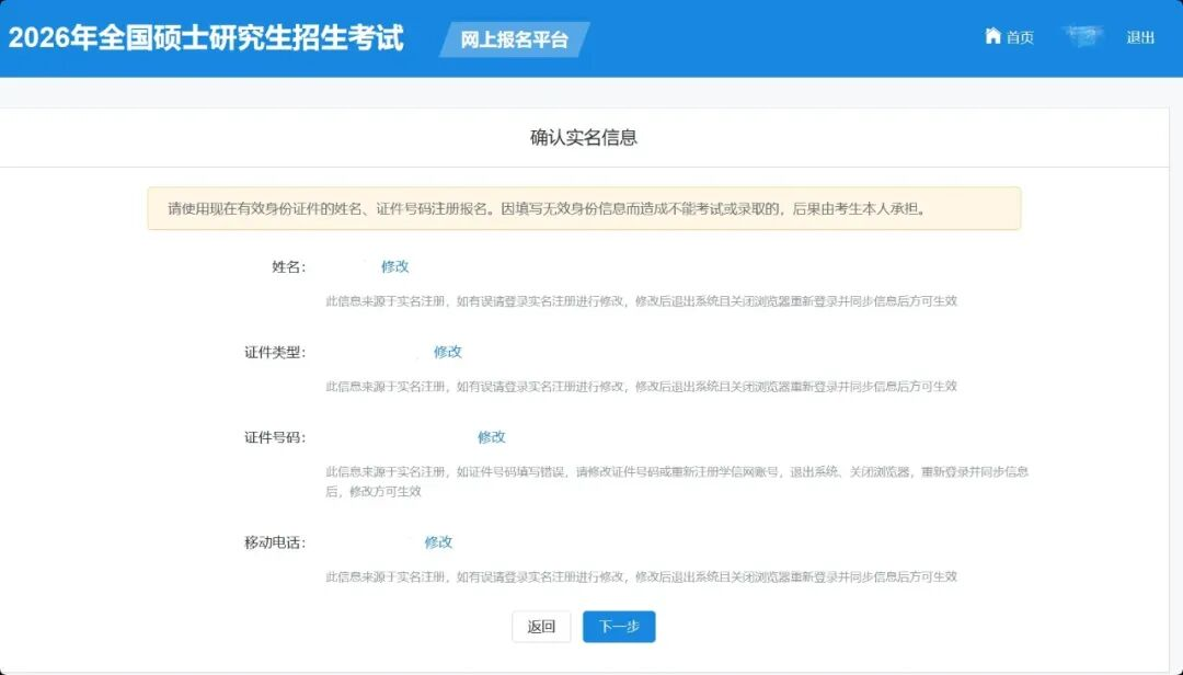 確認(rèn)實(shí)名注冊信息后,考生要按照《2026年全國碩士研究生招生工作管理規(guī)定》要求填寫正確的學(xué)歷(學(xué)籍)信息。