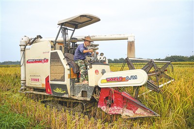 我國糧食產(chǎn)量連續(xù)6年保持在1.3萬億斤以上,與農(nóng)業(yè)現(xiàn)代化和土地充分利用密不可分。圖為今年秋季一名農(nóng)民駕駛收割機在海南海口龍華區(qū)龍泉鎮(zhèn)新江村收割晚稻。新華社記者 蒲曉旭攝