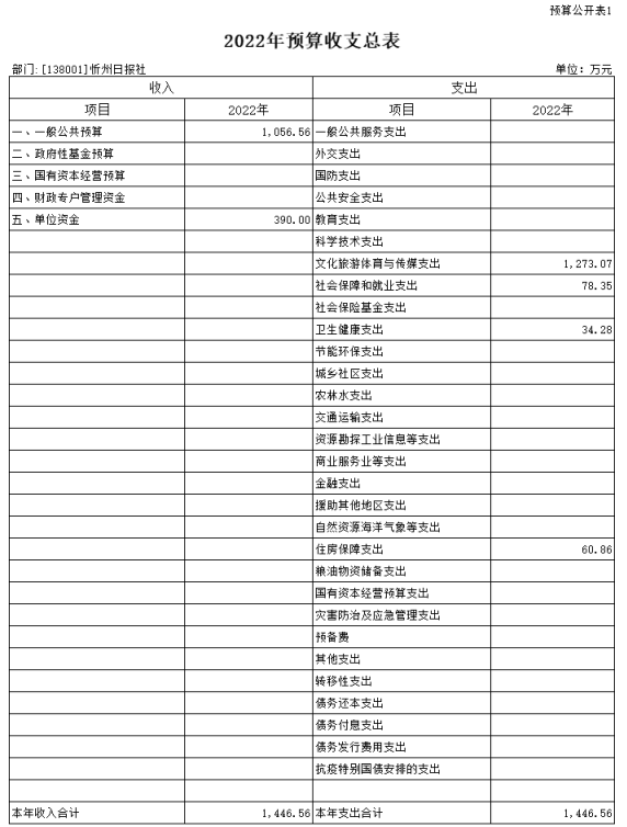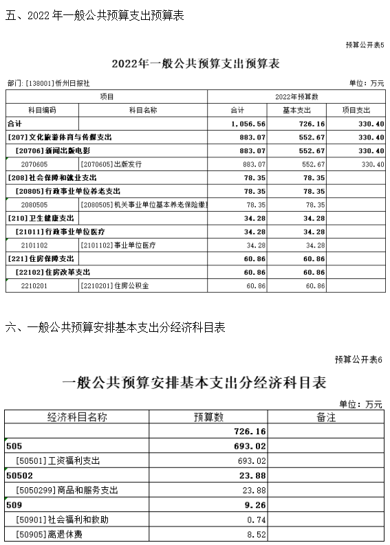 2、預(yù)算單位構(gòu)成:忻州日報社是一級預(yù)算單位,無下屬單位。部門預(yù)算只有一個單位,即忻州日報社。