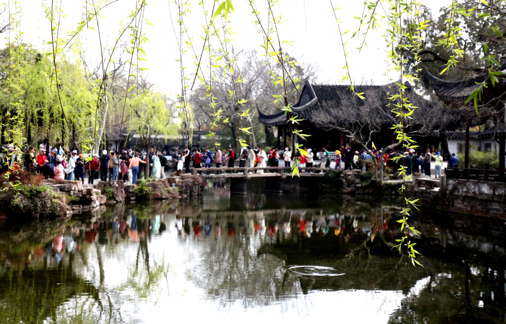 游客在江蘇省蘇州市古典園林拙政園觀光游玩(2023年3月15日攝)。新華社發(fā)(杭興微 攝)