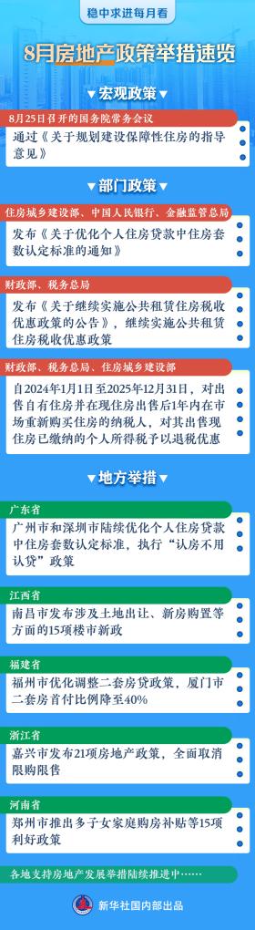 近段時間,相關(guān)部門陸續(xù)釋放地產(chǎn)領(lǐng)域積極政策信號:8月初,中國人民銀行在部署下半年工作時明確提出“繼續(xù)引導(dǎo)個人住房貸款利率和首付比例下行”;近日,住房城鄉(xiāng)建設(shè)部等三部門給出了“認(rèn)房不認(rèn)貸”政策具體實(shí)施標(biāo)準(zhǔn);財政部還公布了兩項(xiàng)針對房地產(chǎn)市場的稅收優(yōu)惠政策。