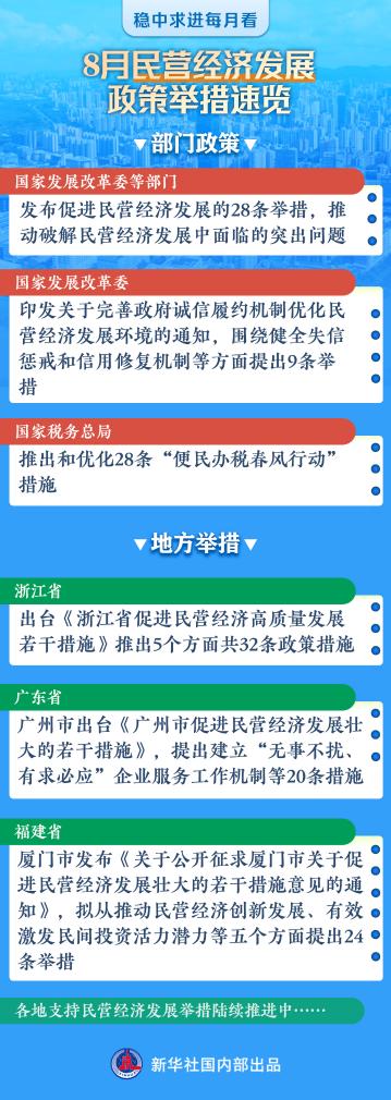 8月份以來,針對民營企業(yè)面臨的痛點(diǎn)、堵點(diǎn)、難點(diǎn),從中央到地方密集推出系列政策舉措,旨在激發(fā)民間投資活力,鼓勵企業(yè)敢闖、敢投、敢擔(dān)風(fēng)險。