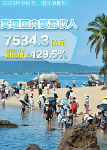 經(jīng)文化和旅游部數(shù)據(jù)中心測算,2023年中秋節(jié)、國慶節(jié)假期,全國國內(nèi)旅游出游人數(shù)8.26億人次,同比增長71.3%,按可比口徑較2019年增長4.1%;實現(xiàn)國內(nèi)旅游收入7534.3億元,同比增長129.5%,按可比口徑較2019年增長1.5%。