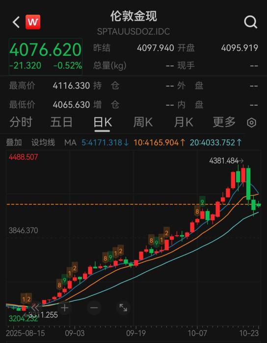 10月22日,倫敦現(xiàn)貨黃金價(jià)格盤中逼近每盎司4000美元。23日亞洲早盤時(shí)段,倫敦現(xiàn)貨黃金為每盎司4090美元左右。