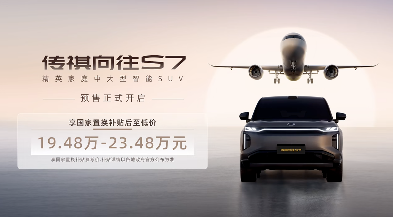 本次發(fā)布會跟C919同臺登場的傳祺向往S7,作為傳祺首款高階智駕車型正式開啟預(yù)售,預(yù)售價格(國補后)為19.48萬元-23.48萬元。作為尖兵,傳祺向往S7已經(jīng)亮劍,也意味著傳祺的向上之路正式開啟。