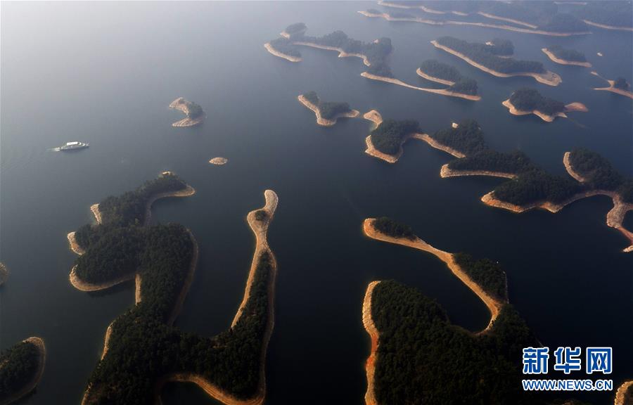 這是3月15日航拍的千島湖風景區(qū)。千島湖位于浙江省杭州市淳安縣境內,是建設新安江水電站攔水筑壩而形成的人工湖,因湖內擁有1078座島嶼而得名。千島湖風光秀美,水質出眾,為著名的旅游景區(qū)。新華社發(fā)(張曉理 攝)