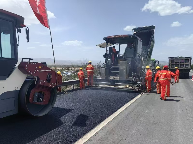 趁熱攻堅,汗水澆筑通途。“瀝青攤鋪必須‘趁熱打鐵’,溫度越高,路面壓實度、密實度就越好!”項目技術(shù)負(fù)責(zé)人解釋道。烈日炙烤下,瀝青混合料溫度高達(dá)160℃,升騰的熱氣裹挾著刺鼻氣味撲面而來,但施工人員手持鐵鍬、緊盯攤鋪機(jī)的身影卻始終堅定。每一車瀝青的傾倒下料、每一寸路面的均勻碾壓,都需要在幾分鐘內(nèi)精準(zhǔn)完成。豆大的汗珠順著安全帽檐滴落,在瀝青路面上瞬間蒸騰,施工人員的工作服早已被汗水浸透,又在高溫中反復(fù)曬干,嶄新的道路,就這樣在灼熱與堅守中悄然延伸。
