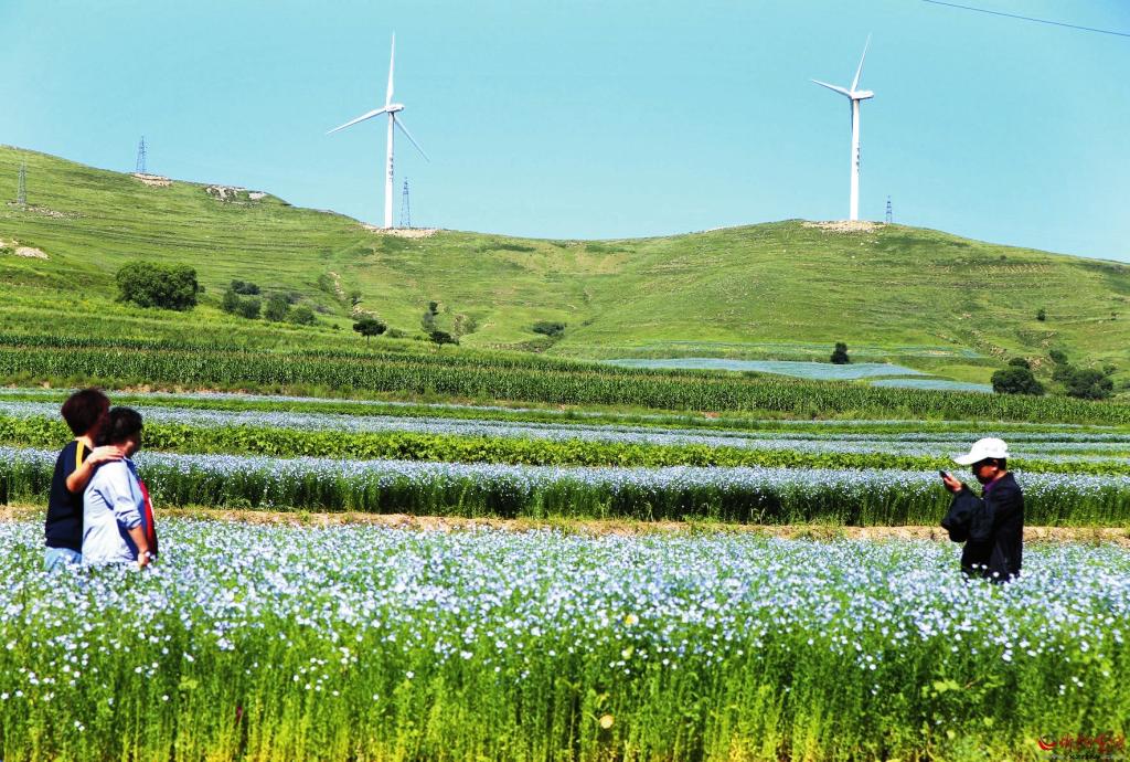 近年來,神池縣加大對(duì)胡麻種植戶的補(bǔ)貼力度,每畝補(bǔ)貼260元,在胡麻品質(zhì)最優(yōu)的烈堡鄉(xiāng)種植1.6萬畝,打造了970畝有機(jī)旱作胡麻種植示范基地。每年6月下旬至7月下旬,烈堡鄉(xiāng)解家?guī)X到長(zhǎng)城寨沿線的胡麻花盛開,藍(lán)色花海與沿線的長(zhǎng)城交相輝映,組成一幅動(dòng)人的美景畫。烈堡鄉(xiāng)鄉(xiāng)長(zhǎng)趙崢嶸介紹,當(dāng)?shù)卣谔剿鳜F(xiàn)代農(nóng)業(yè)發(fā)展新路徑,通過“胡麻產(chǎn)業(yè)+旅游”的方式,吸引更多游客,使胡麻成為帶動(dòng)鄉(xiāng)村振興的重要引擎。