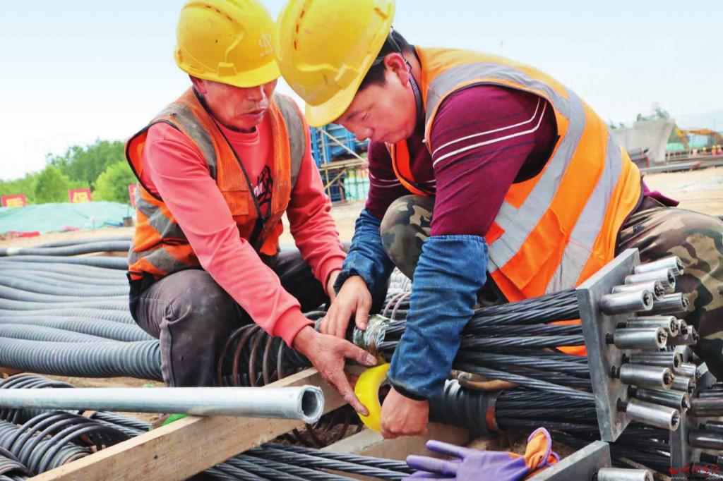 記者近日走進(jìn)南北通道菱形立交橋工地,只見密密匝匝的鋼筋林立如網(wǎng),奮戰(zhàn)在太忻大道一線的工人們頂烈日、冒酷暑、戰(zhàn)高溫,汗流浹背、干勁不減。技術(shù)員仔細(xì)檢查著每一個(gè)接口、鋼筋工熟練準(zhǔn)確排布每一組鋼筋結(jié)構(gòu),井然有序,規(guī)范自如。“南北通道菱形立交橋工程是項(xiàng)目中兩處混凝土澆筑工程之一,目前工程前期準(zhǔn)備工作已接近尾聲,全部澆筑工程任務(wù)將在9月10日前完成?!表?xiàng)目一隊(duì)負(fù)責(zé)人尹耀軍自信滿滿。