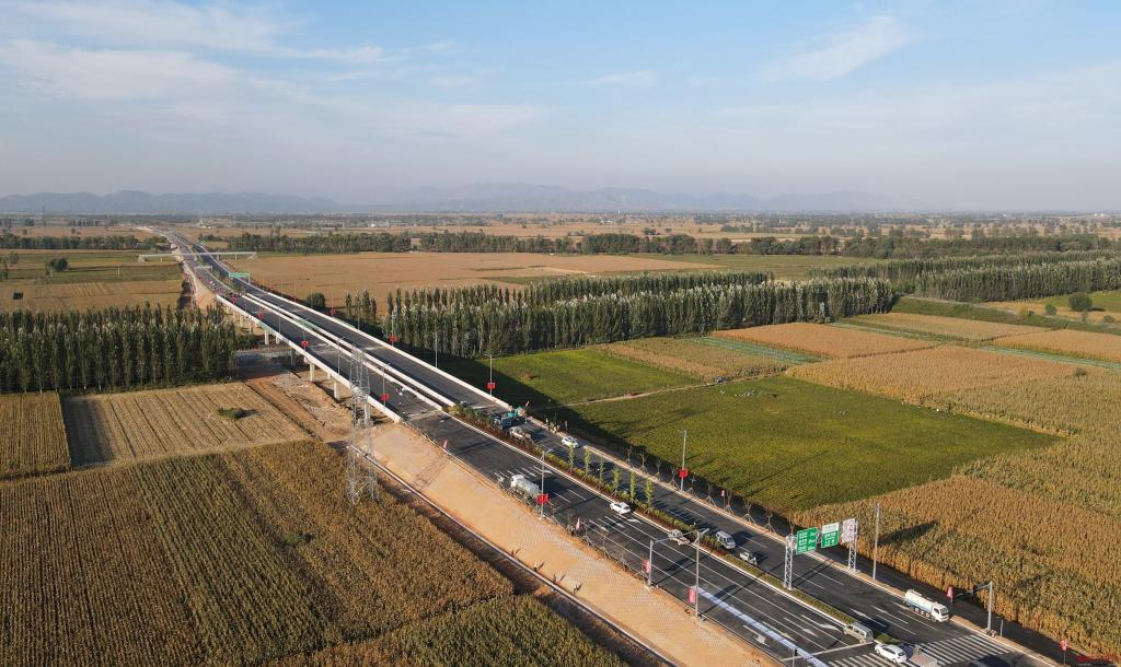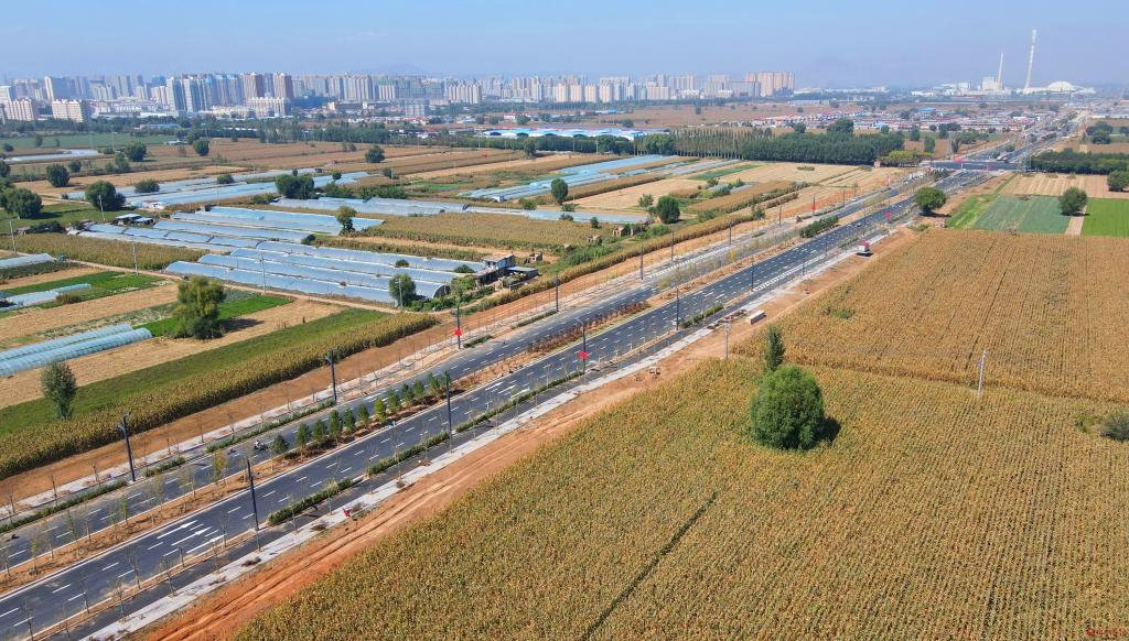 太忻大道猶如“長(zhǎng)龍”穿越田野,美如畫卷。 記者 張存良攝