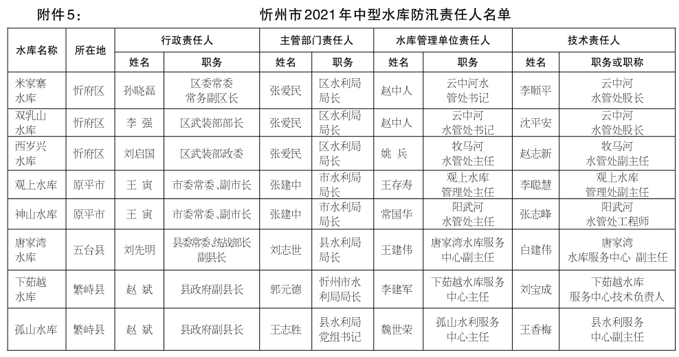 5.忻州市2021年中型水庫(kù)防汛責(zé)任人名單