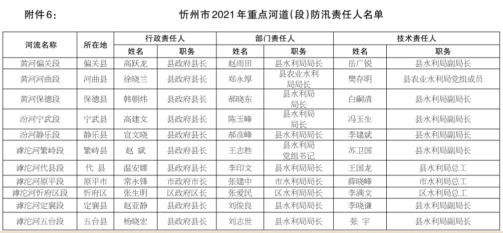 6.忻州市2021年重點(diǎn)河道(段)防汛責(zé)任人名單