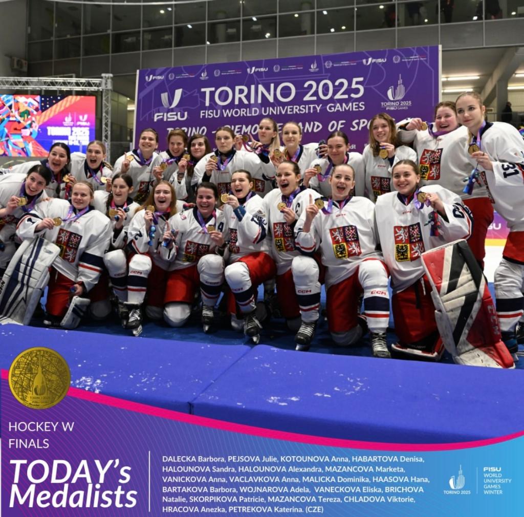 捷克隊獲得第32屆世界大學生冬季運動會女子冰球冠軍。圖片來自大冬會官方社交賬號