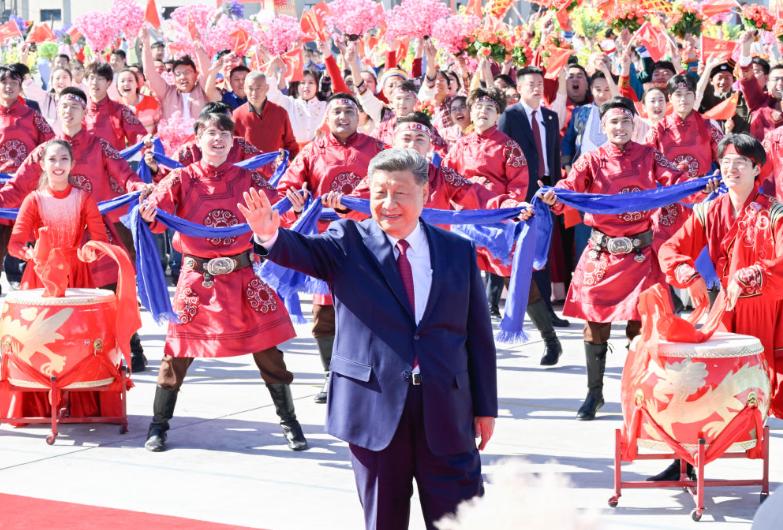 習近平作為中共中央總書記、國家主席、中央軍委主席率中央代表團出席新疆維吾爾自治區(qū)成立慶?;顒?,在黨和國家歷史上是第一次,令新疆各族干部群眾倍感溫暖和振奮。